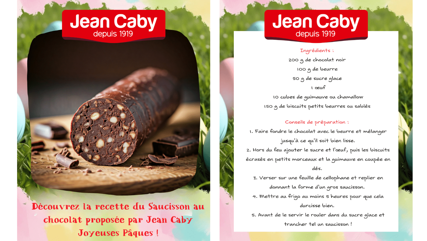 Découvrez la recette du Saucisson au chocolat proposée par Jean Caby ici